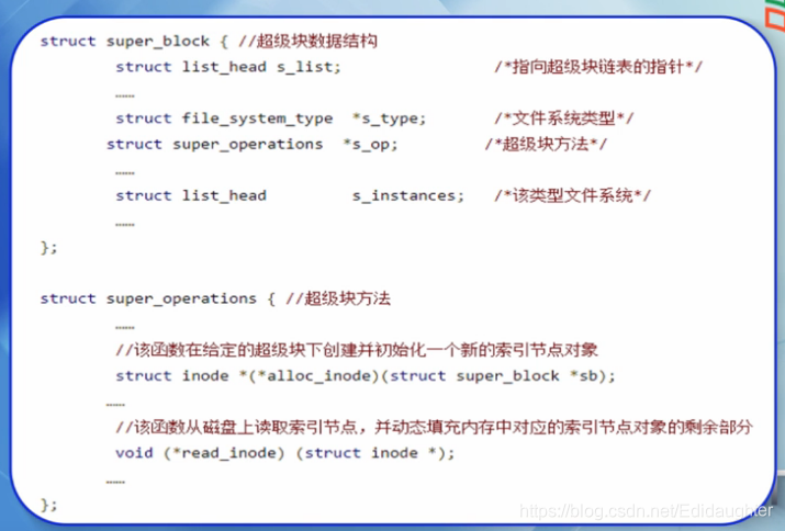 就是超级块操作表,这些操作是由super_operations来描述的.