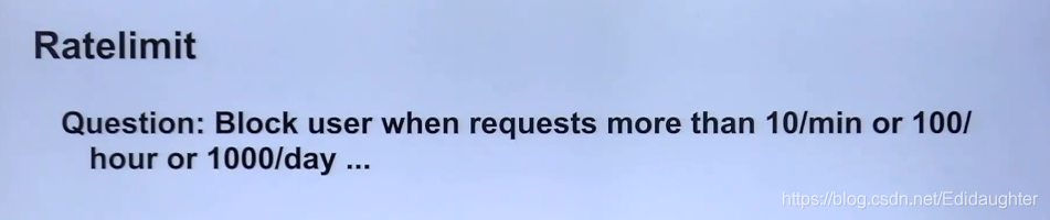 Ratelimit是说对一些访问的请求要设一些黑名单或者权限的控制,比如说一分钟之内访问10次,1小时内