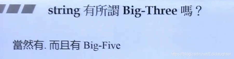 标准库中string类中有指针变量,有引用计数,相当复杂,也是需要重写Big-Three的.