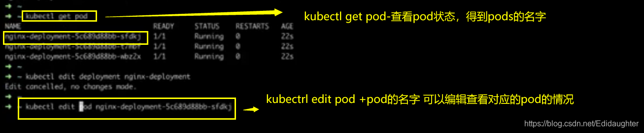 kubectl edit pod nginx-deployment-5c689d88bb-ck974 编辑编号为nginx-deployment-5c689d88bb-ck974的pod,:q退出