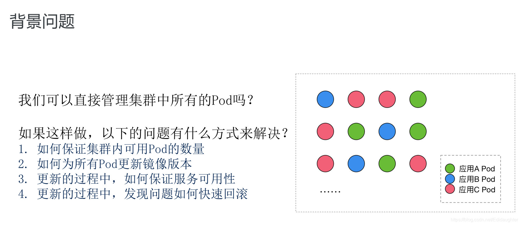首先,Deployment定义了一种Pod期望数量,比如说应用A,我们期望Pod数量是四个,那么这样的话,