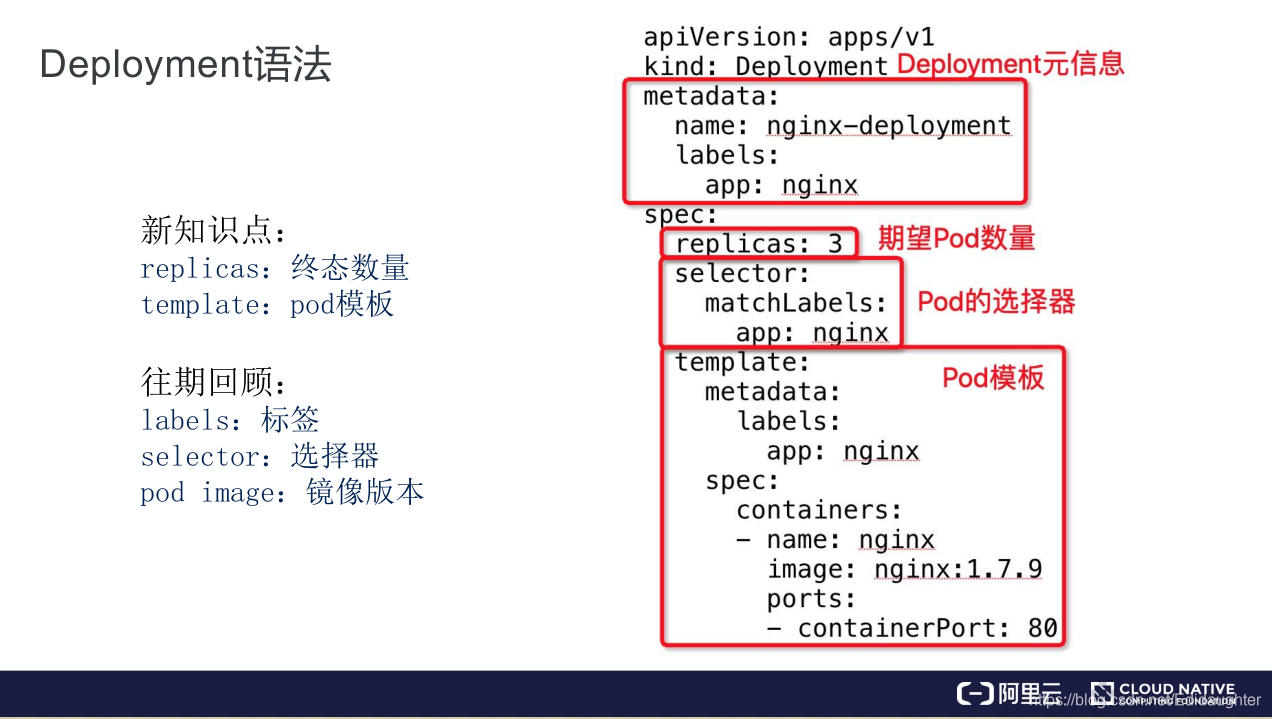 Deployment元信息,也就是往期回顾中的Labels、Selector、Pod.image,这些都是在往期中提到的知识点.