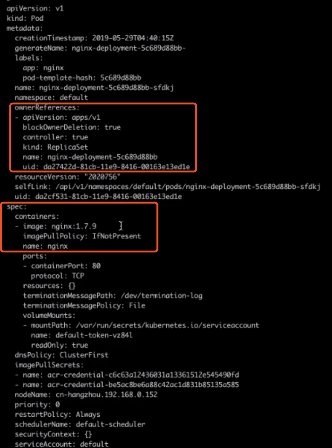 kubectl get pod/nginx-deployment-5c689d88bb-ck974 -o yaml 查看编号为nginx-deployment-5c689d88bb-ck974的pod的情况并输出到yaml文件中