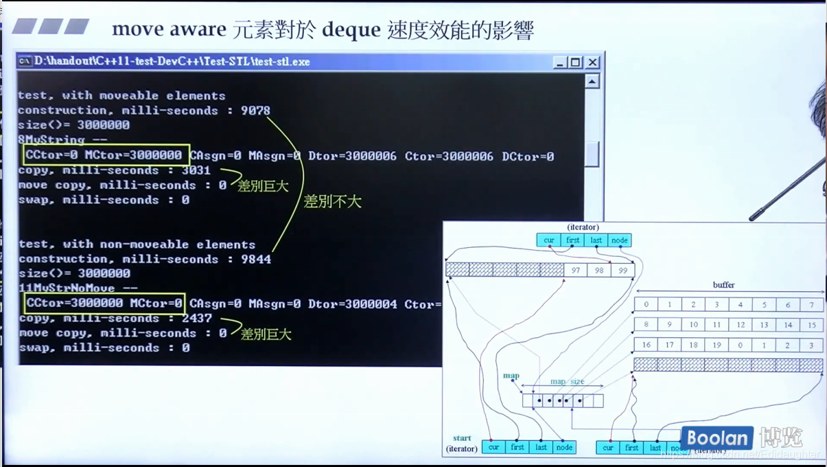 移动语义其实对vector的影响最大,对其他容器几乎没有什么影响(deque不在两头插值的时候也会影响较大).