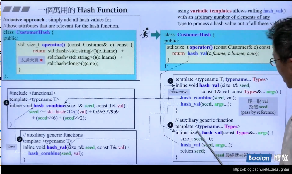 在C++2.0之前,标准库中没有提供一个可以给出string的哈希值的方法,图中的第四是编译不过的,