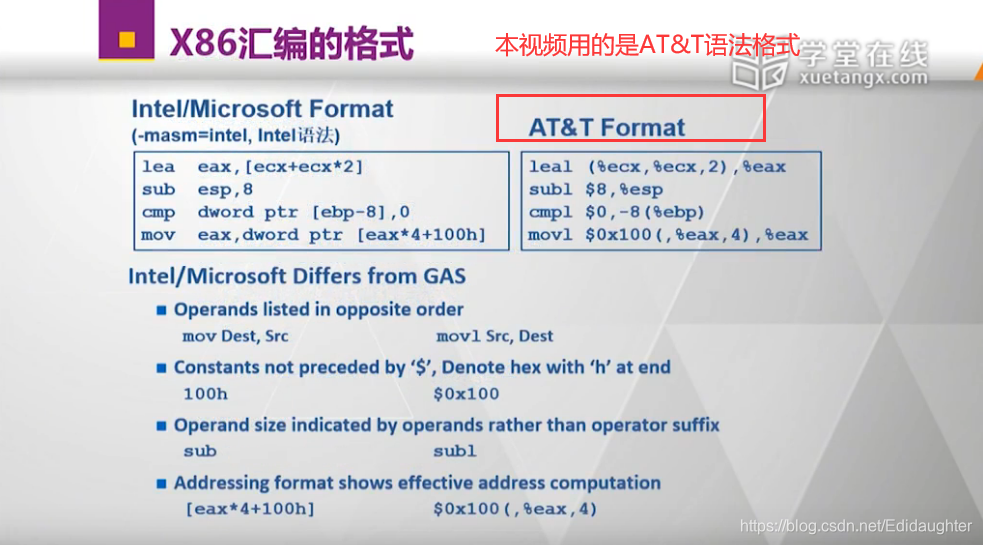 gcc -S -masm=intel sample.c -o sample.s 用 -masm=intel可以生成intel/MS Format的汇编