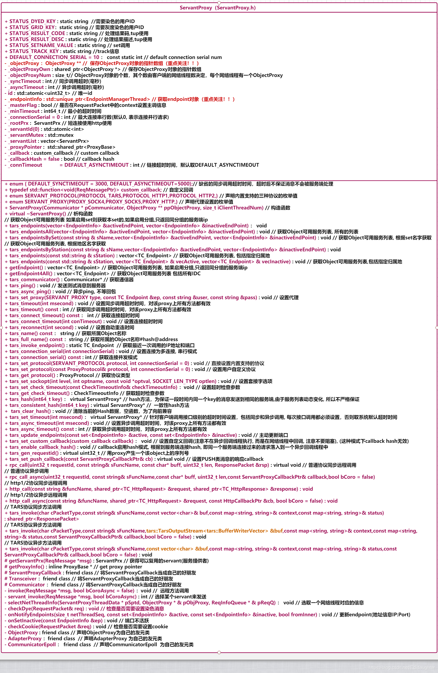 ServantProxy调用RPC服务。下面简单介绍几个类的作用。