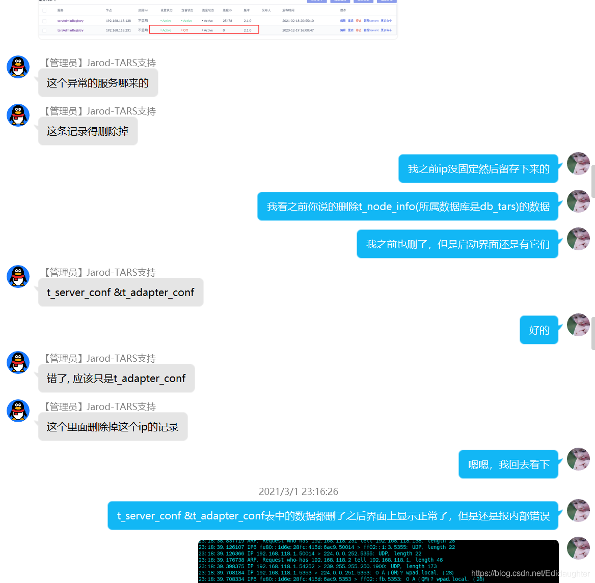 几张表中关于192.168.18.231的信息删除,192.168.18.231是IP未固定之前用的,需要删除.