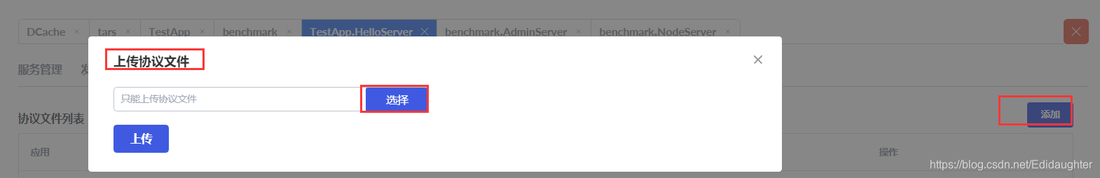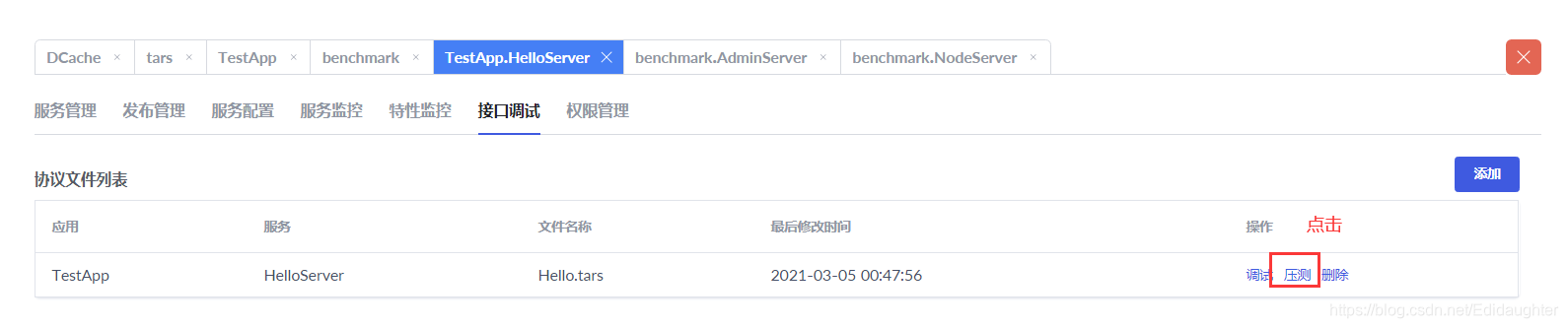 4.1 选中服务的【接口调试】【添加】【上传协议文件】
