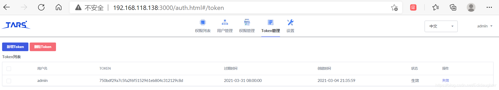进入http://192.168.118.138:3000/auth.html#/token新增token并过去token
