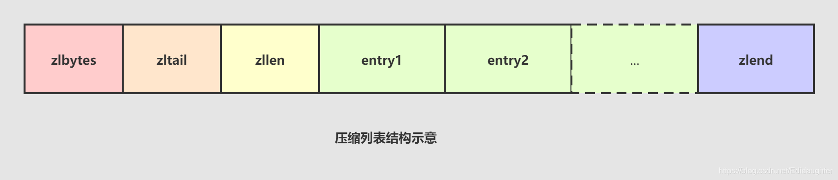 5)zlend:压缩列表的结尾,占1个字节,恒为0xFF。
