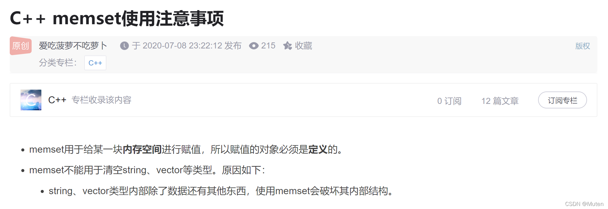 因为,memset(&structname,0,sizeof(structname)) 会把 struct 结构体内的所有复位为0,内含的 string对象被毁坏了。所以对于struct内含需要在堆上申请内存的对象,最好不要用 memset这类函数对结构体进去初始化,如果真的需要使用,一定要注意写正确代码并测试周全,防止出现访问错误内存的情况。