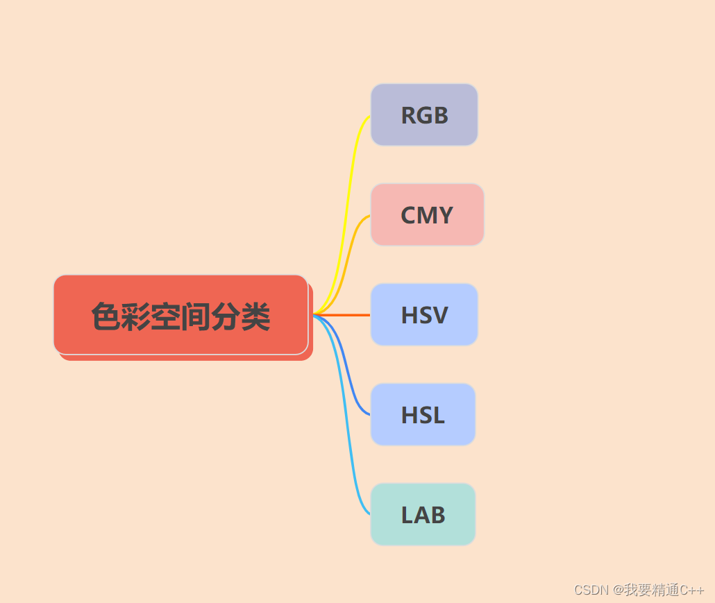 CMY---Cyan,Magenta,Yellow,工业印刷中常用的CMY颜色空间是基于光反射定义的