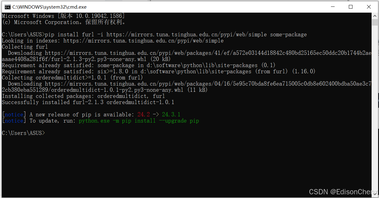 pip install furl -i https://mirrors.tuna.tsinghua.edu.cn/pypi/web/simple some-package