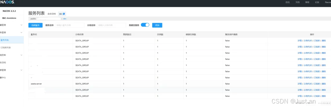 10。再重新启动,启动成功后在nacos注册中心会显示当前的seata的服务