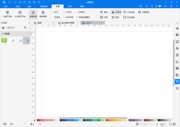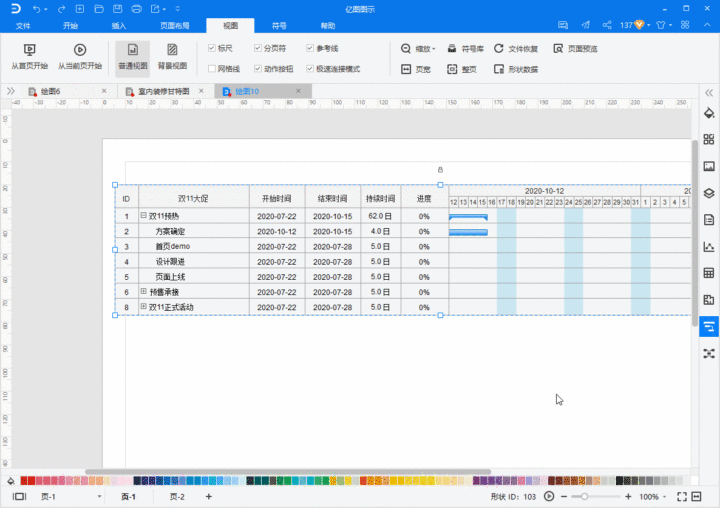 第二,从左侧符号库,选择合适的甘特图符号拖放到画布中,支持图形快速缩放。这时候,已经隐约可见甘特图雏形了;