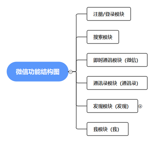 所谓产品功能结构图,按百度百科的定义,就是按照产品功能的从属关系画成的图表,下图的每一个框都称为一个功能模块。