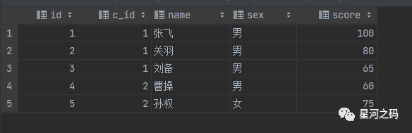 以student表中的数据为例: