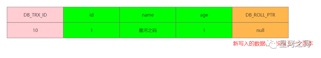 假设有一个事物【DB_TRX_ID = 10】在表中插入了一条数据,则它的数据结构为为:
