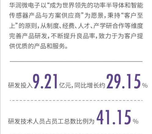 2022年,华润微电子员工总数为9470人,研发人员占比41.15%,达3896人。