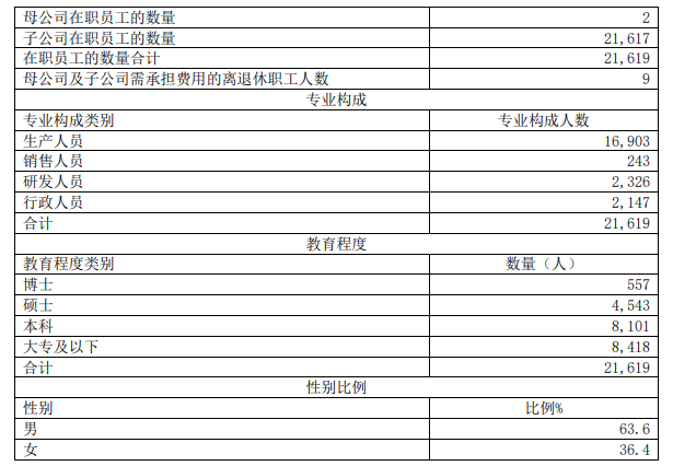 | 2 | ZTE中兴 | 3.3万人 | 216亿 |