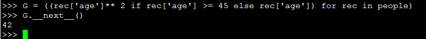 >>> G = ((rec['age']** 2 if rec['age'] >= 45 else rec['age']) for rec in people)