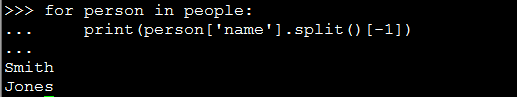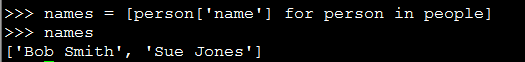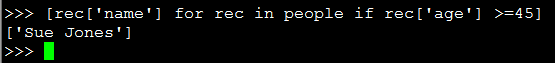 >>> [rec['name'] for rec in people if rec['age'] >=45]