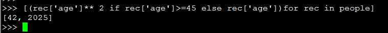 >>> [(rec['age']** 2 if rec['age']>=45 else rec['age'])for rec in people]