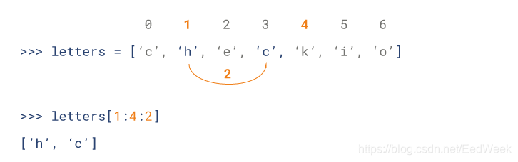 Python 列表截取可以接收第三个参数,参数作用是截取的步长,以下实例在索引 1 到索引 4 的位置并设置为步长为 2(间隔一个位置)来截取字符串: