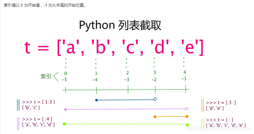 索引值以 0 为开始值,-1 为从末尾的开始位置。
