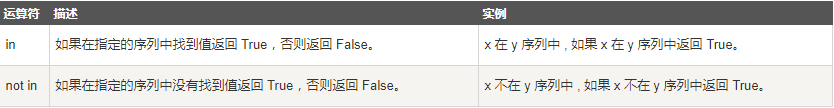 除了以上的一些运算符之外,Python还支持成员运算符,测试实例中包含了一系列的成员,包括字符串,列表或元组。