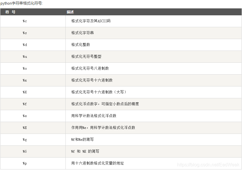 在 Python 中,字符串格式化使用与 C 中 sprintf 函数一样的语法。