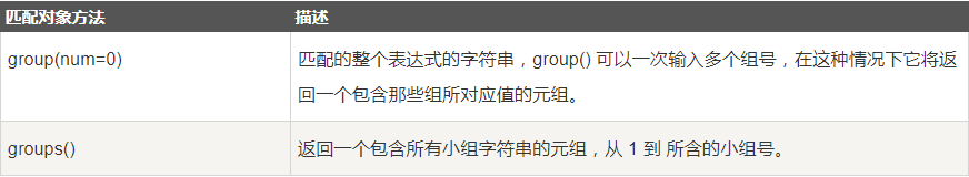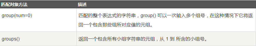 我们可以使用group(num) 或 groups() 匹配对象函数来获取匹配表达式。