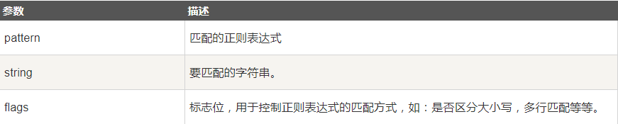 - pattern : 正则中的模式字符串。
