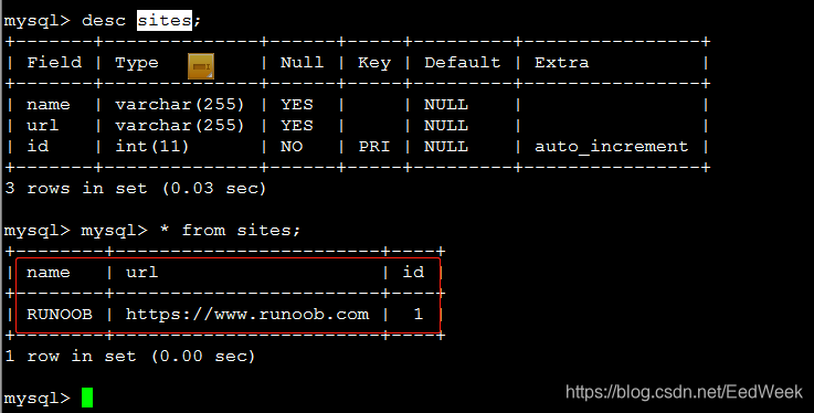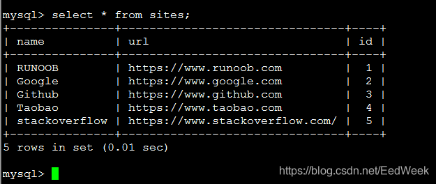 sql = "SELECT * FROM sites WHERE name ='RUNOOB'"