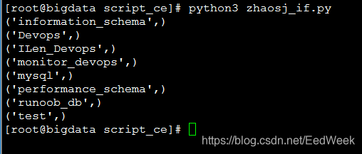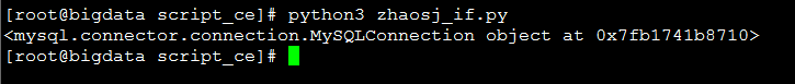 #!/usr/bin/python # -*- coding: utf-8 -*- #Author: zhaosj import mysql.connector mydb = mysql.connector.connect( host="192.168.109.128", # 数据库主机地址 user="root", # 数据库用户名 passwd="blueware" # 数据库密码 ) print(mydb)