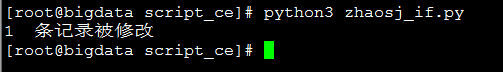 #!/usr/bin/python # -*- coding: utf-8 -*- #Author: zhaosj import mysql.connector mydb = mysql.connector.connect( host="192.168.109.128", user="root", passwd="blueware", database="runoob_db" ) mycursor = mydb.cursor() sql = "UPDATE sites SET name = 'ZH' WHERE name = 'Zhihu'" mycursor.execute(sql) mydb.commit() print(mycursor.rowcount, " 条记录被修改")