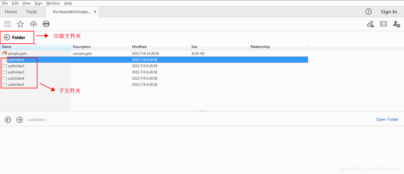 pdf.saveToFile("PortfolioWithFolders.pdf", FileFormat.PDF);