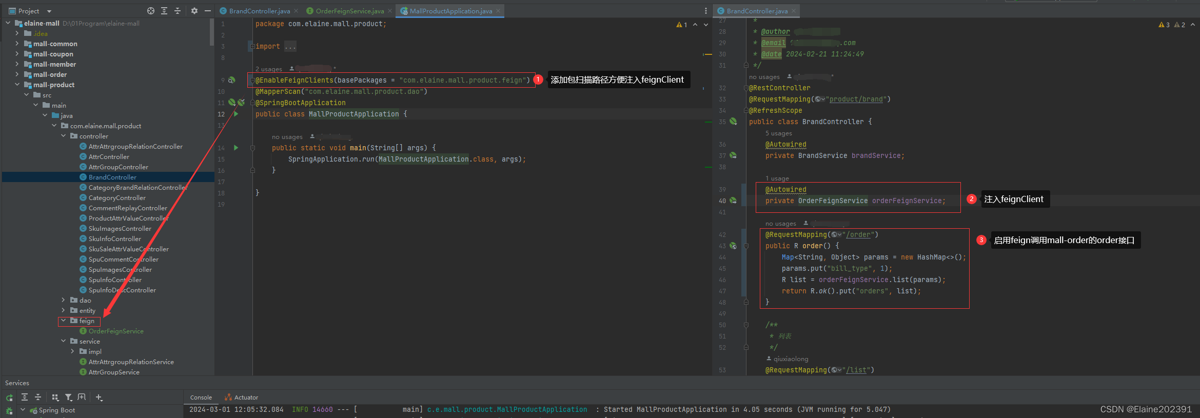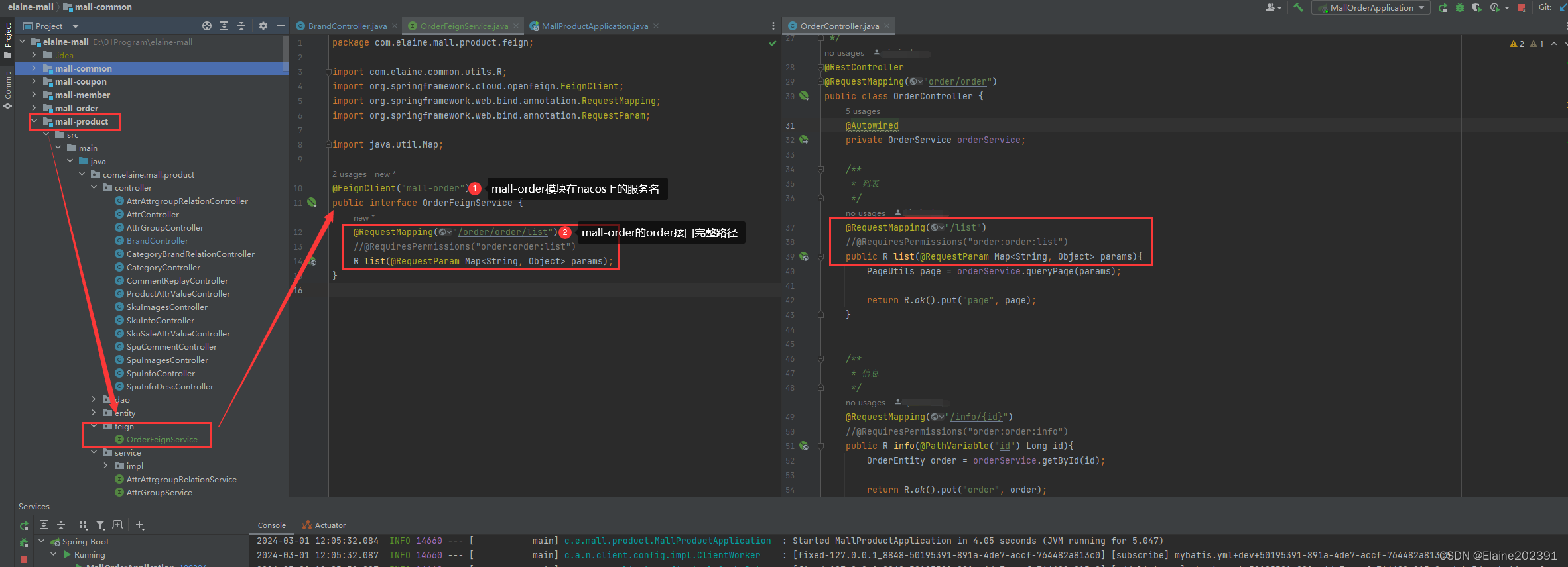 还是使用项目进行说明,mall-product想要调用mall-order的获取订单列表接口。