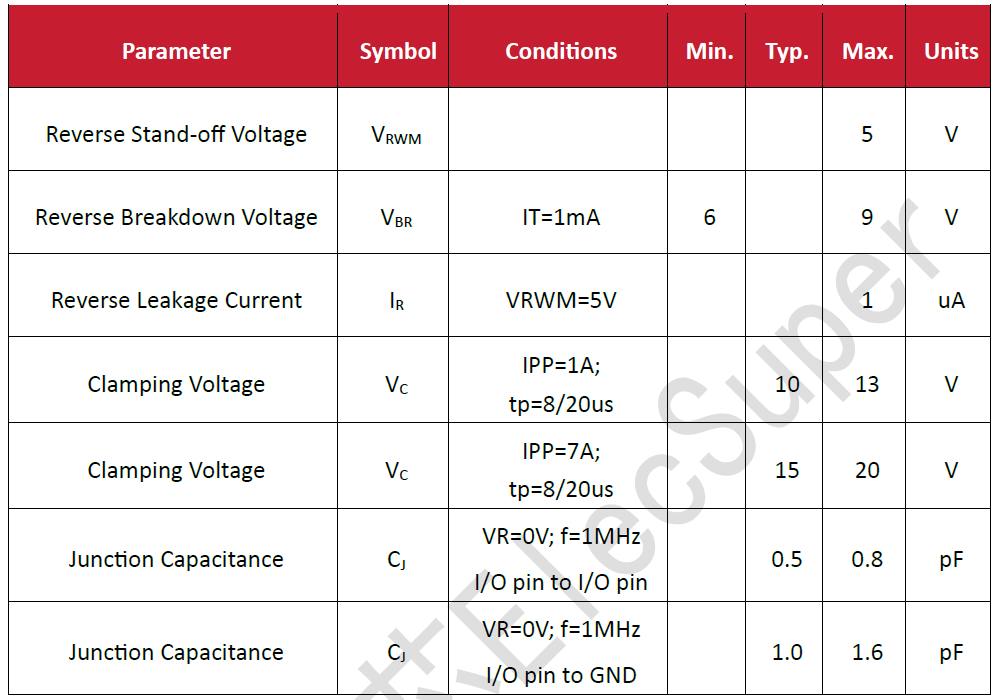 - 具有快速相应时间:以便在静电放电(ESD)事件发生时立即箝制瞬态电压,防止其损坏电路。