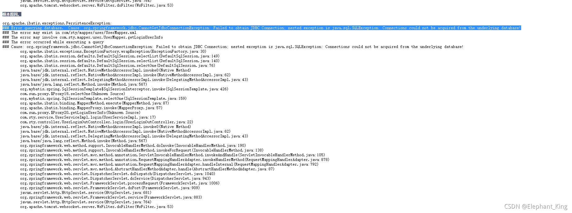 ### Error querying database. Cause: org.springframework.jdbc.CannotGetJdbcConnectionException: Failed to obtain JDBC Connection; nested exception is java.sql.SQLException: Connections could not be acquired from the underlying database!