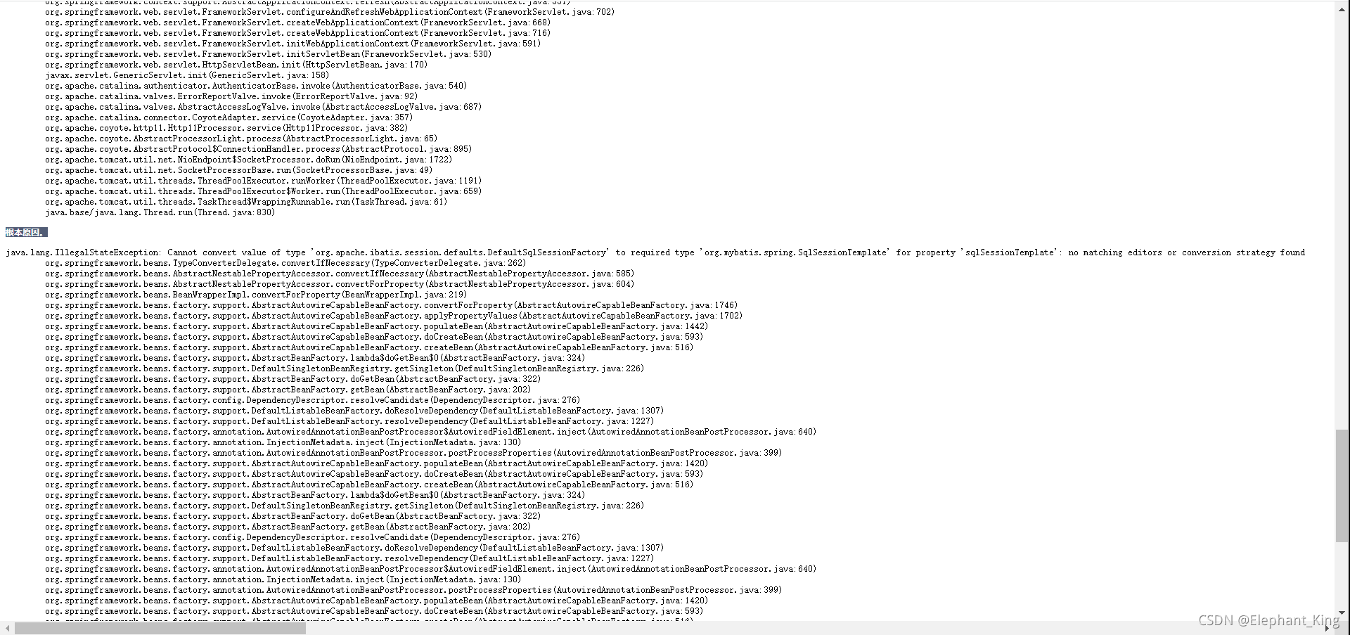 java.lang.IllegalStateException: Cannot convert value of type 'org.apache.ibatis.session.defaults.DefaultSqlSessionFactory' to required type 'org.mybatis.spring.SqlSessionTemplate' for property 'sqlSessionTemplate': no matching editors or conversion strategy found