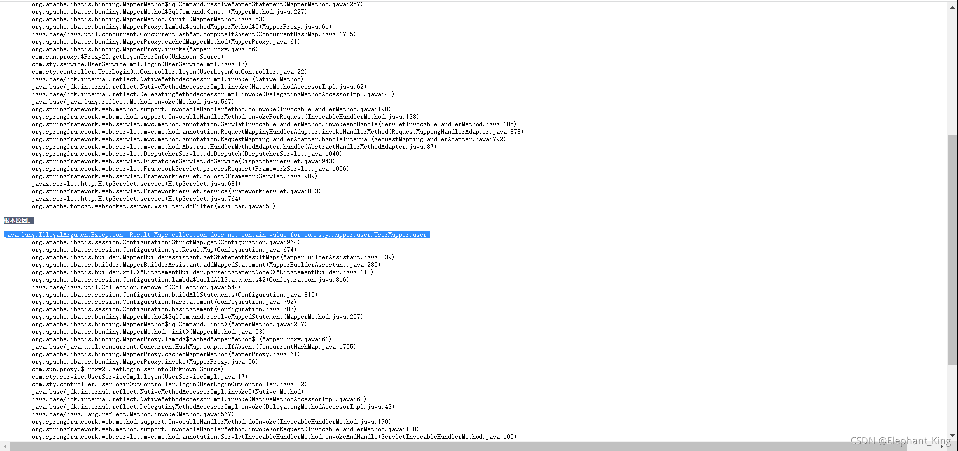java.lang.IllegalArgumentException: Result Maps collection does not contain value for com.sty.mapper.user.UserMapper.user