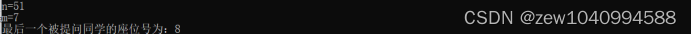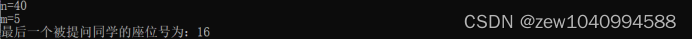编程求班级最后一个被提问的同学的座位号。验证一下:1) n=40, m=5; 2)n=51, m=7。