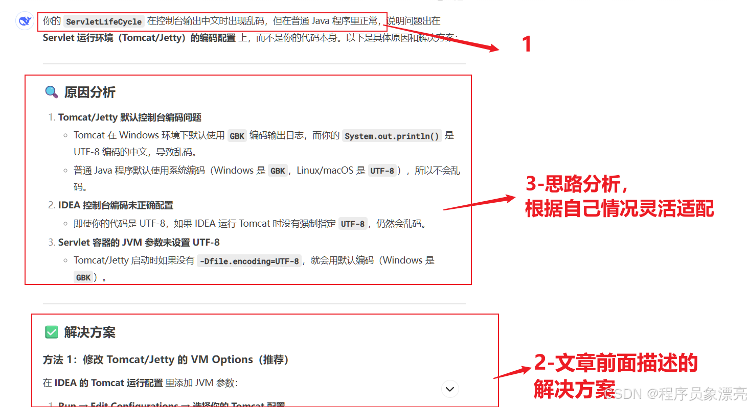 Tomcat 启动时如果没有 -Dfile.encoding=UTF-8,默认编码在windows下是GBK。【如果不设置则jvm加载.class文件使用的是GBK,而我们.java文件是UTF-8编译到.class文件,jvm使用GBK解码utf-8的.class文件,自然会出现乱码】
