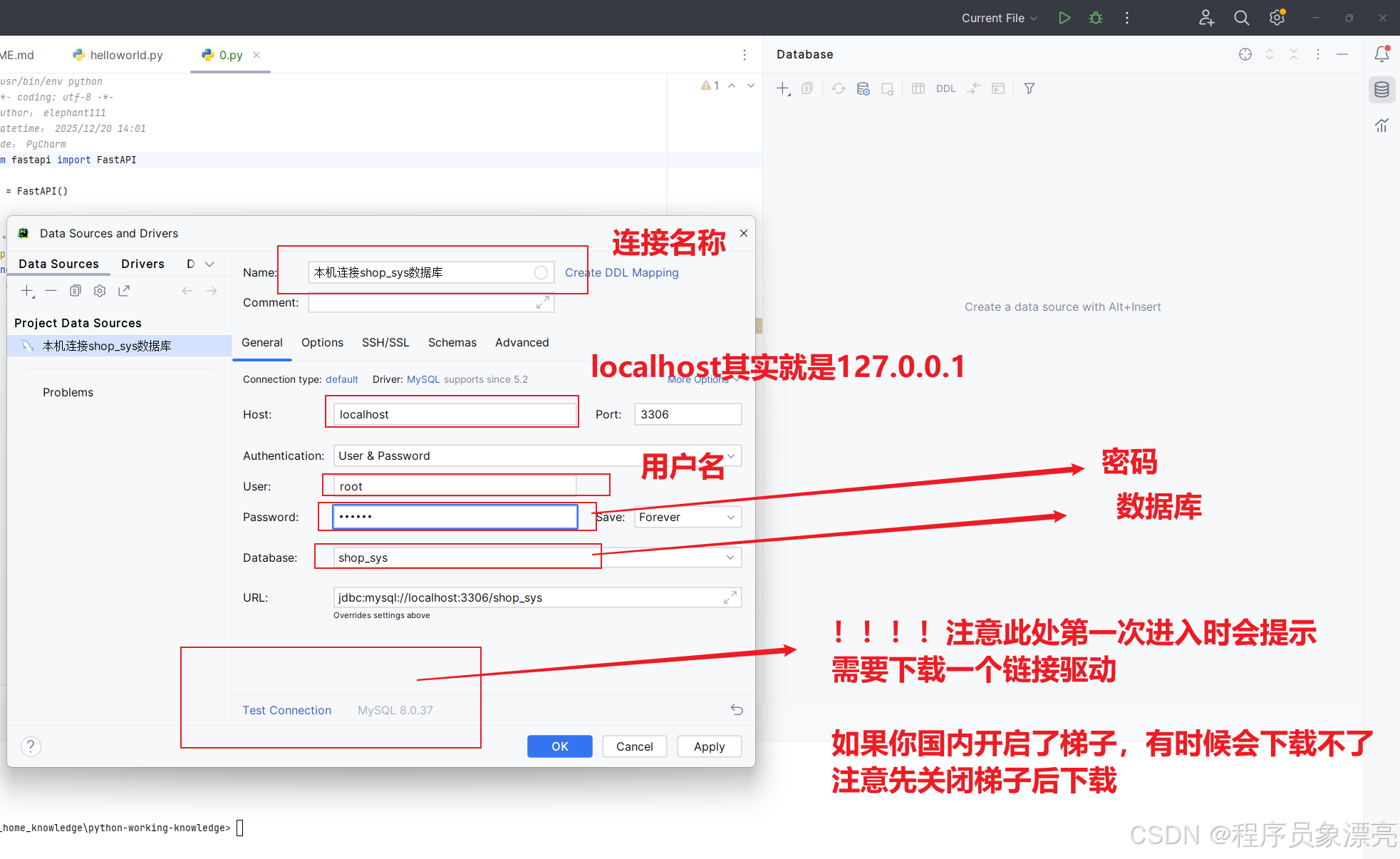 大家不妨试试自己喜欢、熟悉的编辑器,看看里面有没有自带的数据库连接功能,一般来说都是有的。比如Java的IDEA编辑器、Python的PyCharm编辑器都是可以直连的,老师教学的方式大部分固话,尝试一下自己琢磨出来的新点子才是工作、大学中的主流快乐!!!!