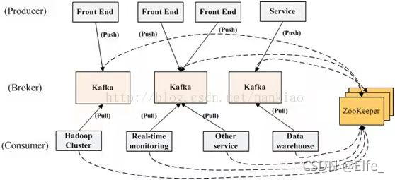 1,kafaka集群的 broker,和 Consumer 都需要连接 Zookeeper。Producer 直接连接 Broker。