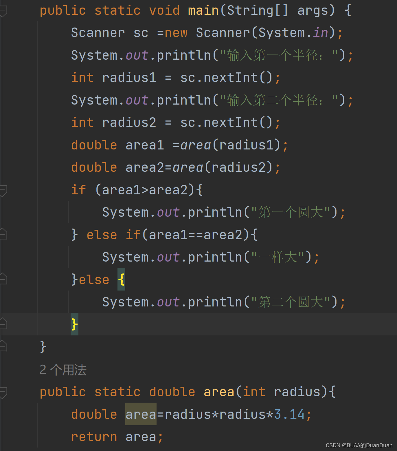 键盘录入两个圆的半径(整数),比较两个圆的面积。