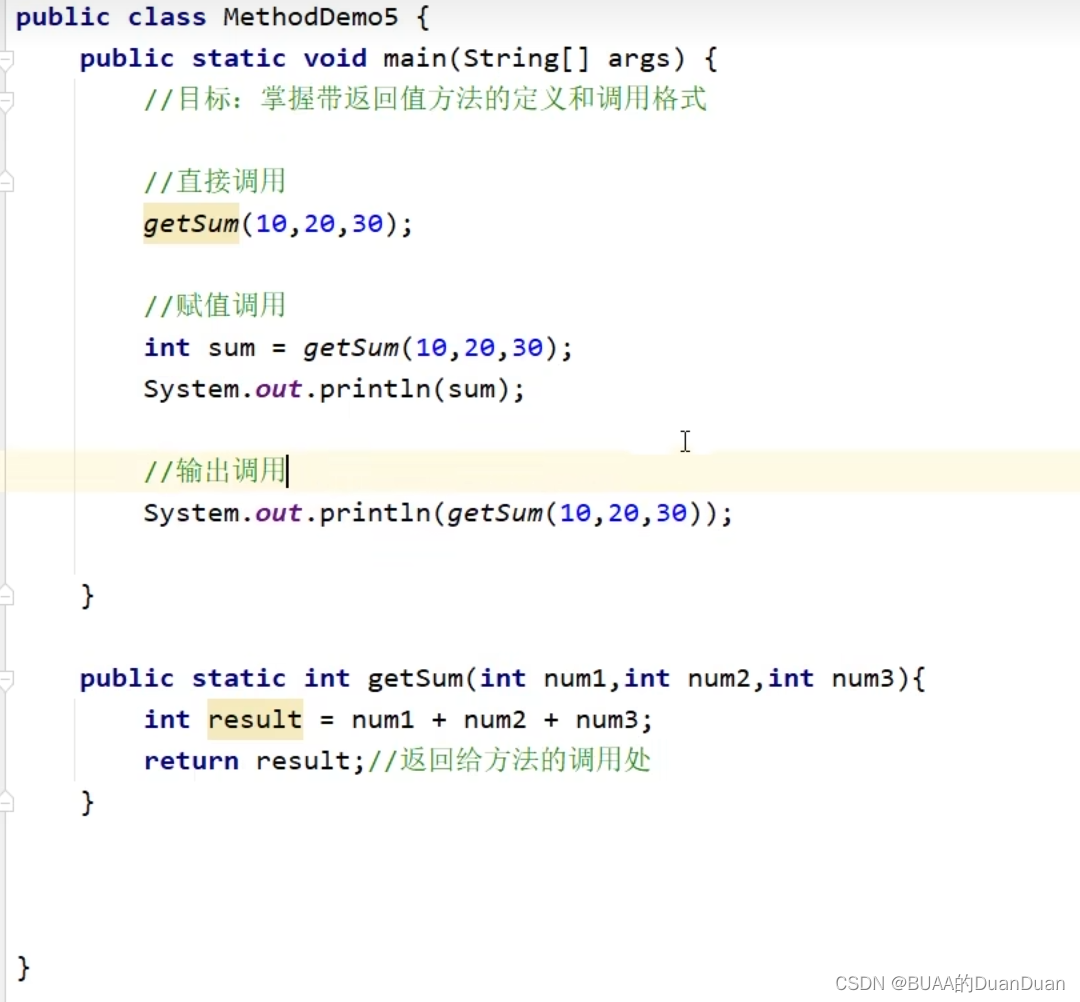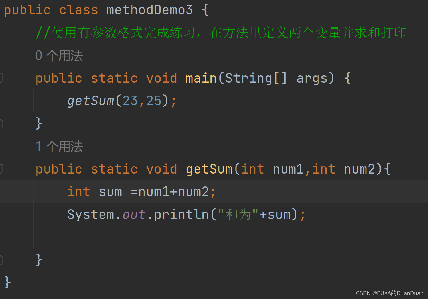方法创建后并不是直接可以运行的,需要手动调用后才能行,该过程成为方法调用