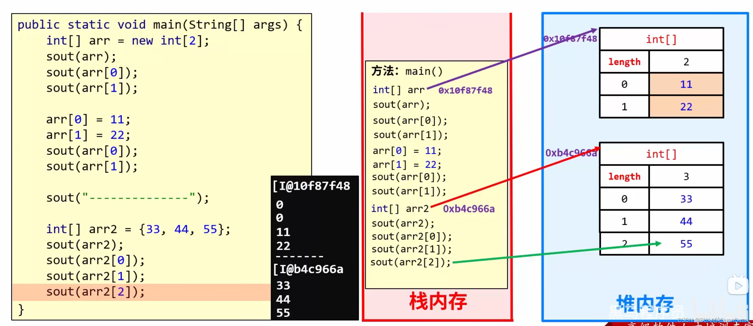 静态、动态初始化的数组,通过地址传给数组名,所以直接打印数组名打印出来是地址